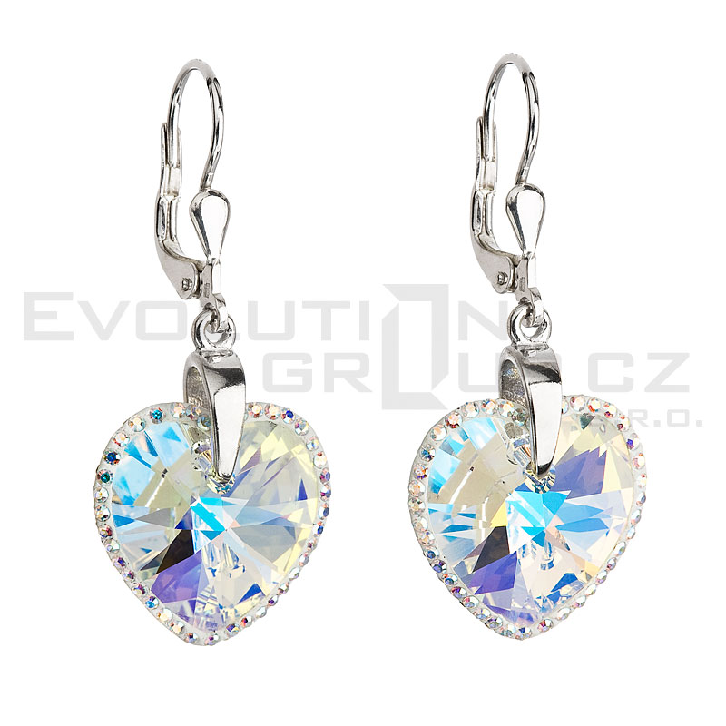 Kryształowe wiszące kolzcyki - serce po obwodzie dekorowane kryształami.
