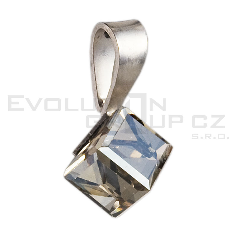 Kryształowy wisiorek z oczkiem ze srebra rodiowanego – sześciościank