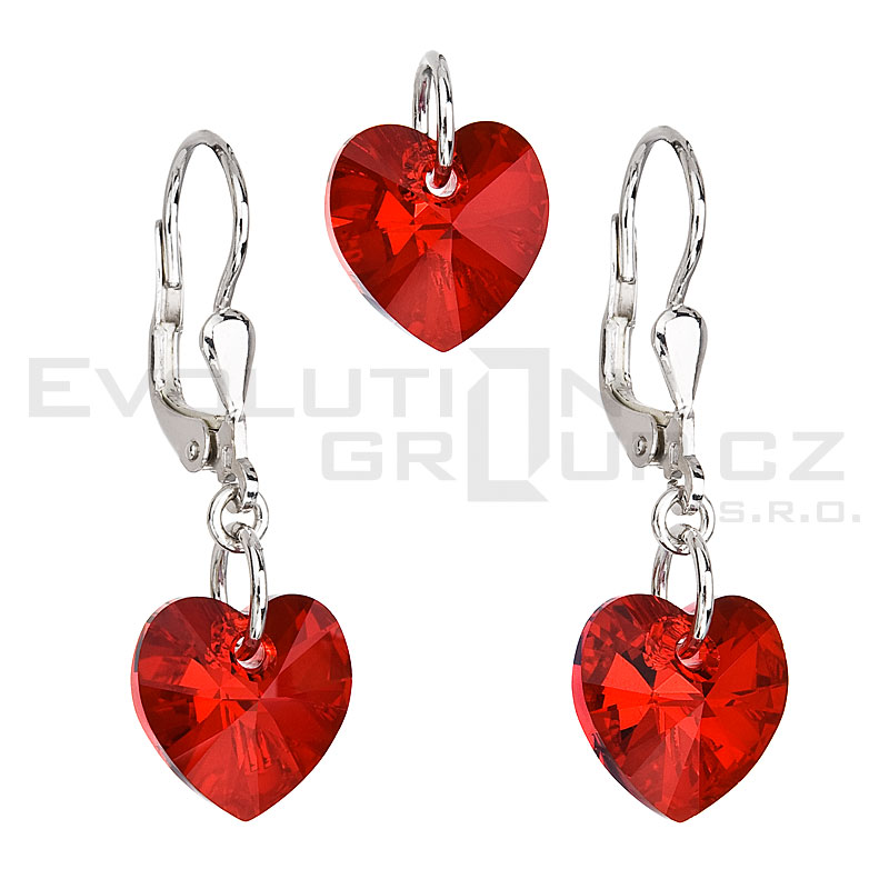 Kryształowy zestaw w srebrze rodium - serduszka