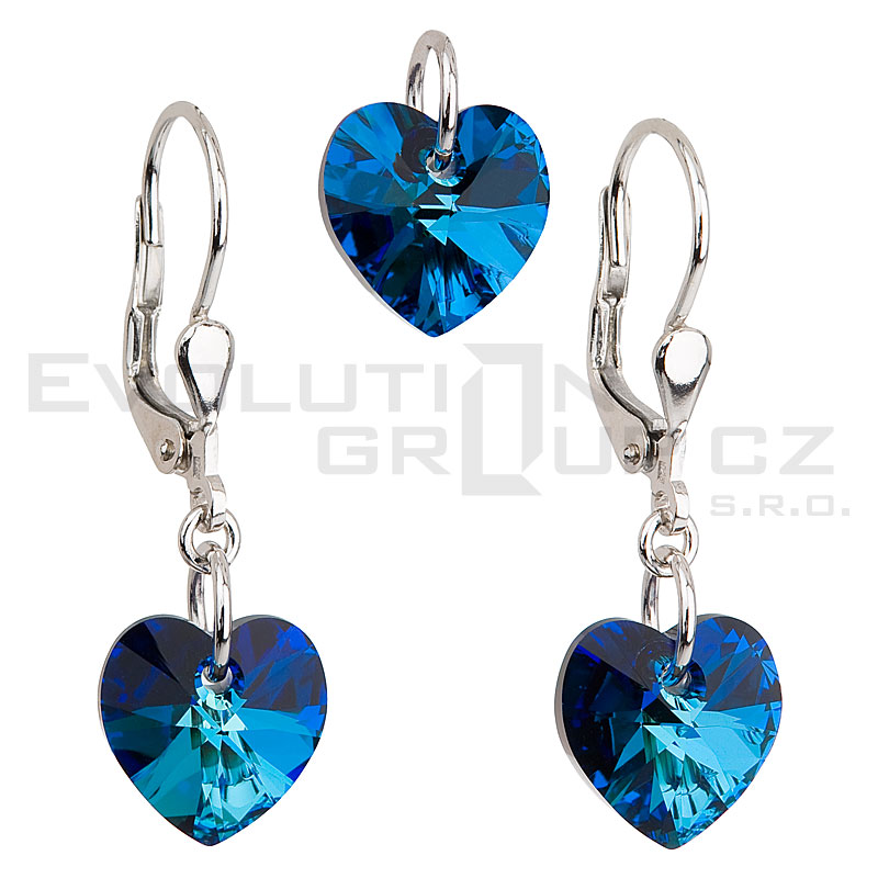 Kryształowy zestaw w srebrze rodium - serduszka