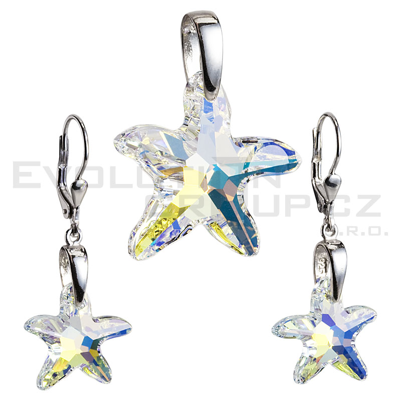 Kryształowy zestaw w srebrze rodium - gwiazdy.