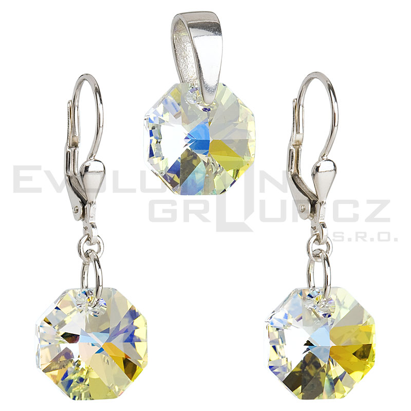 Kryształowy zestaw w srebrze rodium - ośmiokąty.