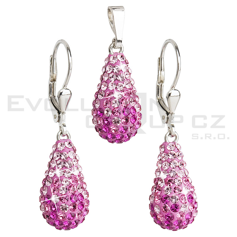 Kryształowy zestaw w srebrze rodium - krople.