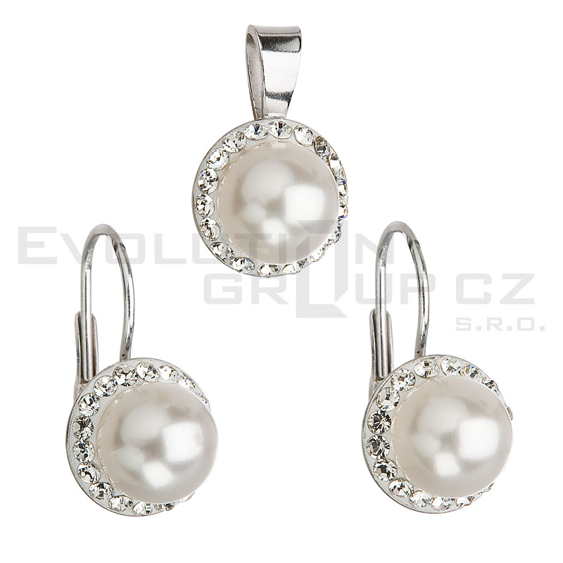 Perłovy komplet dekorovany kryształami.