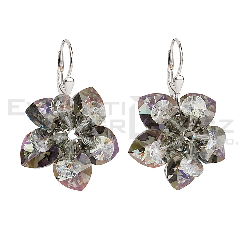 Kryształowe wiszące kolzcyki w srebrze rodium - lilia wodna.
