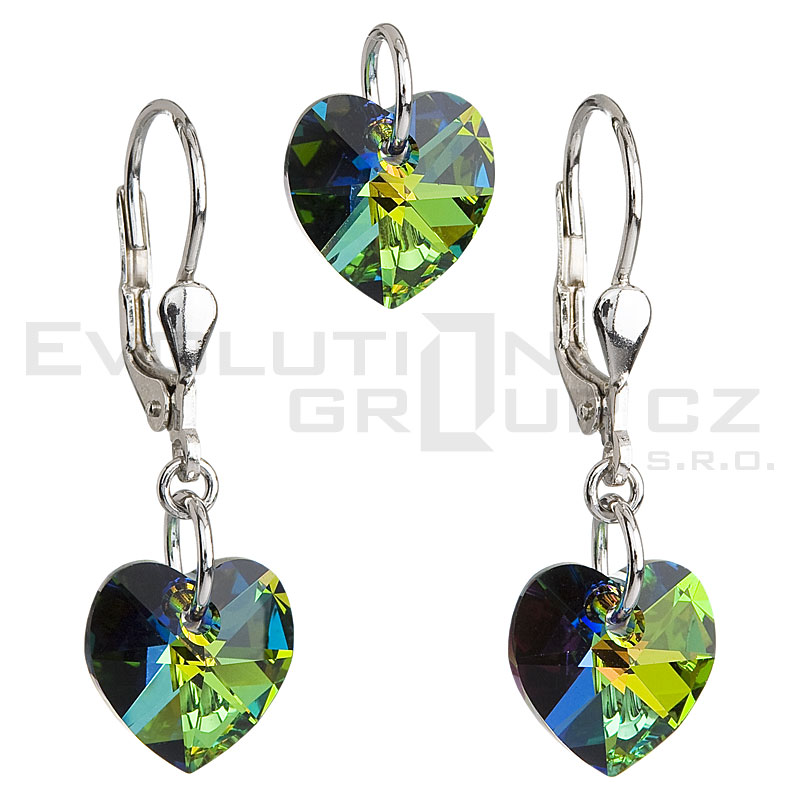 Kryształowy zestaw w srebrze rodium - serduszka